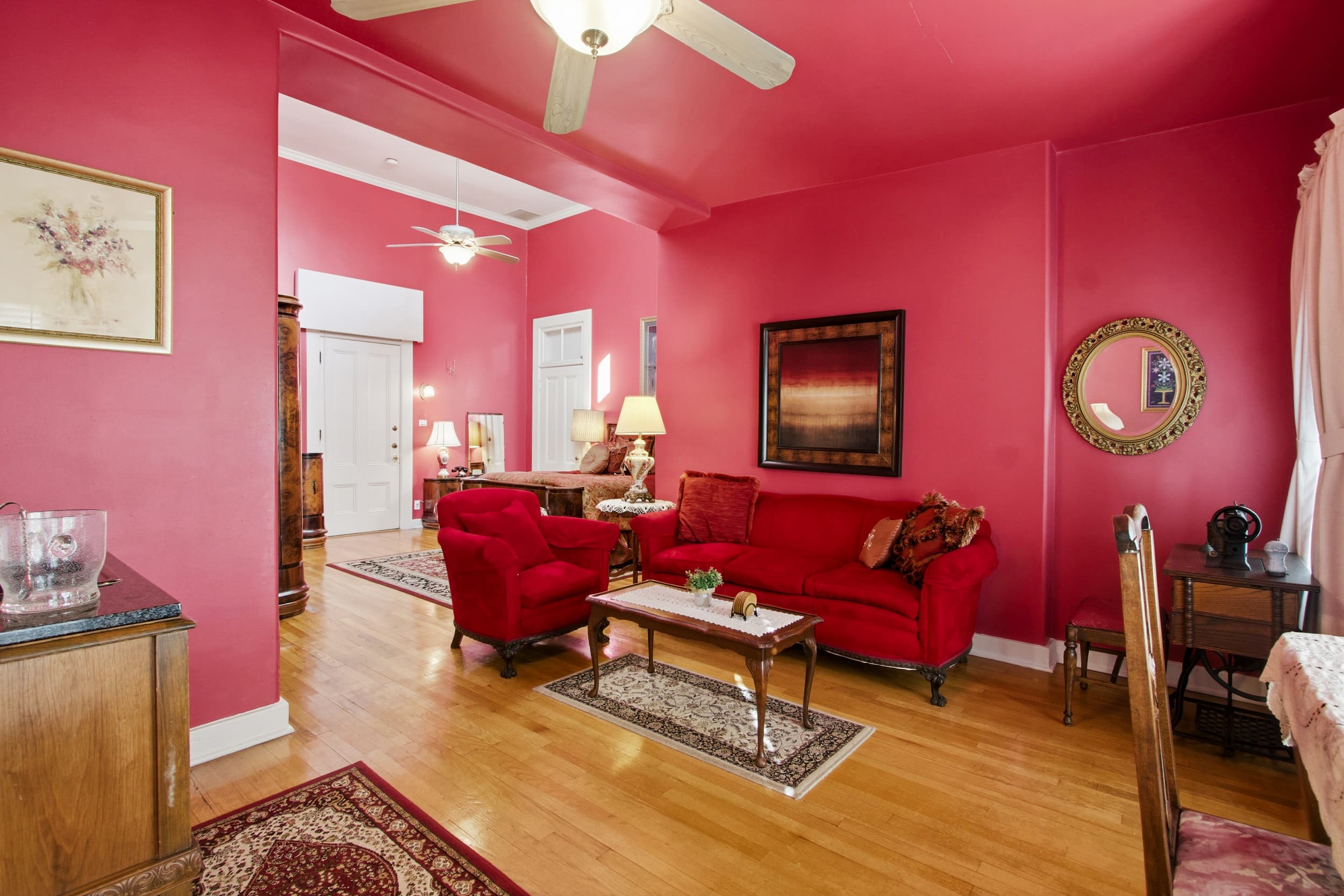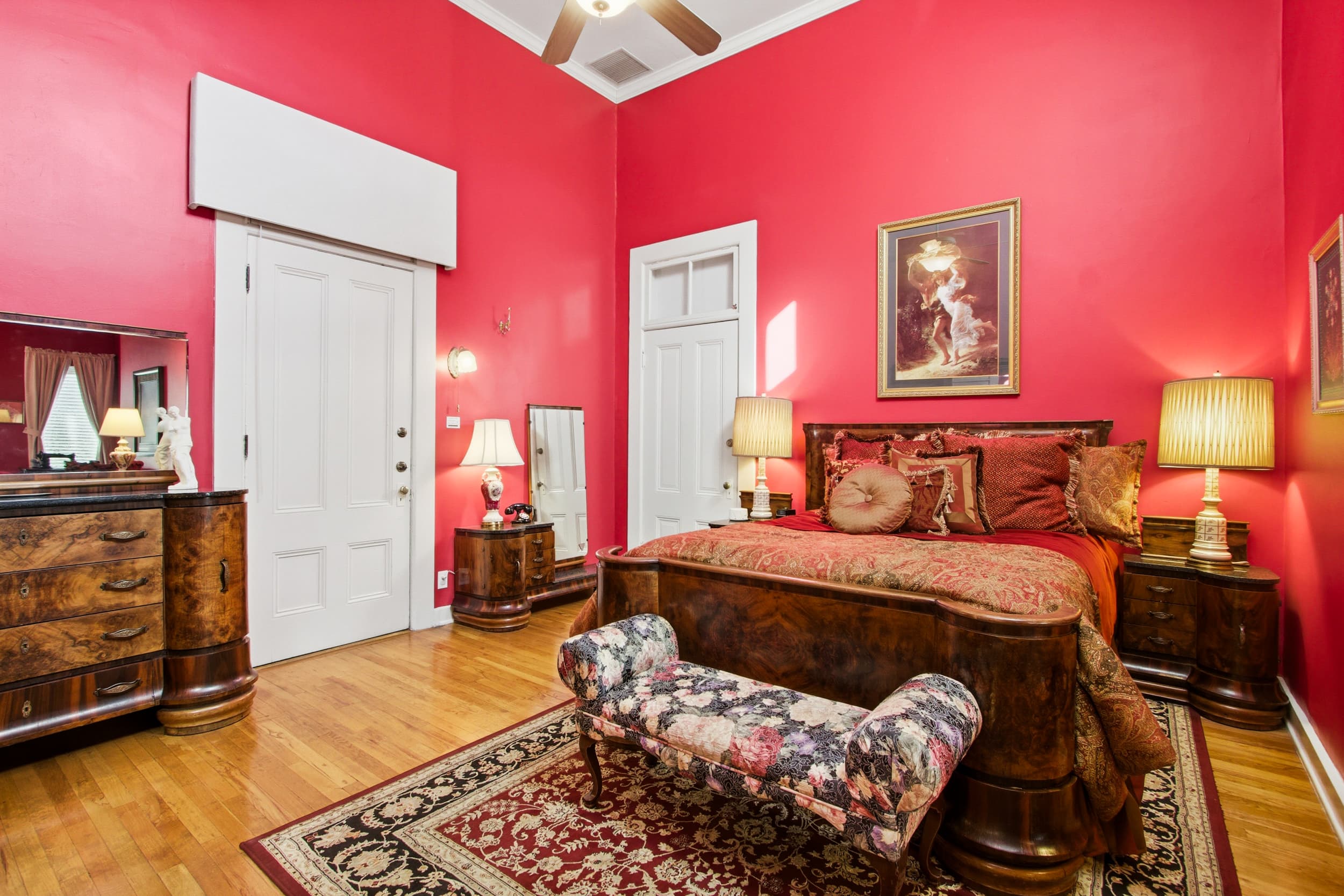 This luxurious vintage 3-bedroom suite allows for our Sydney Marie Suite (3 persons), The Ryan Patrick Suite (2 persons) and The Nicole Elizabeth Suite (2 persons) to be adjoined into the very best suite with private access to the swimming pool and spa area of our property. The warm Arizona sunshine flows generously into each of the unique bedrooms either through the lovely reading nook in the Nicole, the large bay window in the Ryan, or the cozy day room in the Sydney. This combination is perfect for any small family or friends gathering and sleeps 7 total persons.