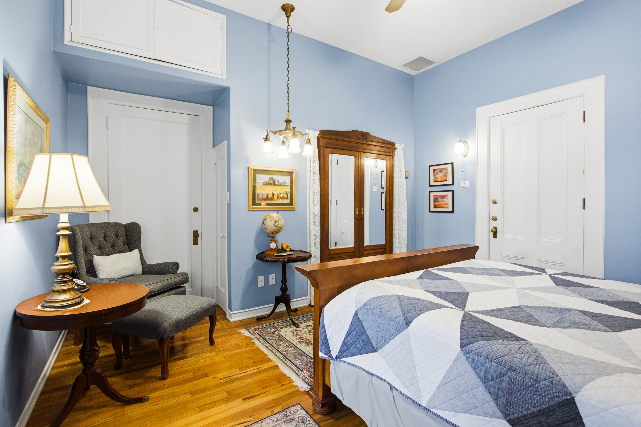 The Nick Anthony Room is a rich, stately example of our inn's English touch. This Tudor-style accommodation has an en-suite bathroom with bathtub, which is just one of the reasons the Nick Anthony room has become a favorite. The Nick Anthony also can be easily adjoined to the Sarah Page Suite as additional family room, such as an add-on grandparent suite.